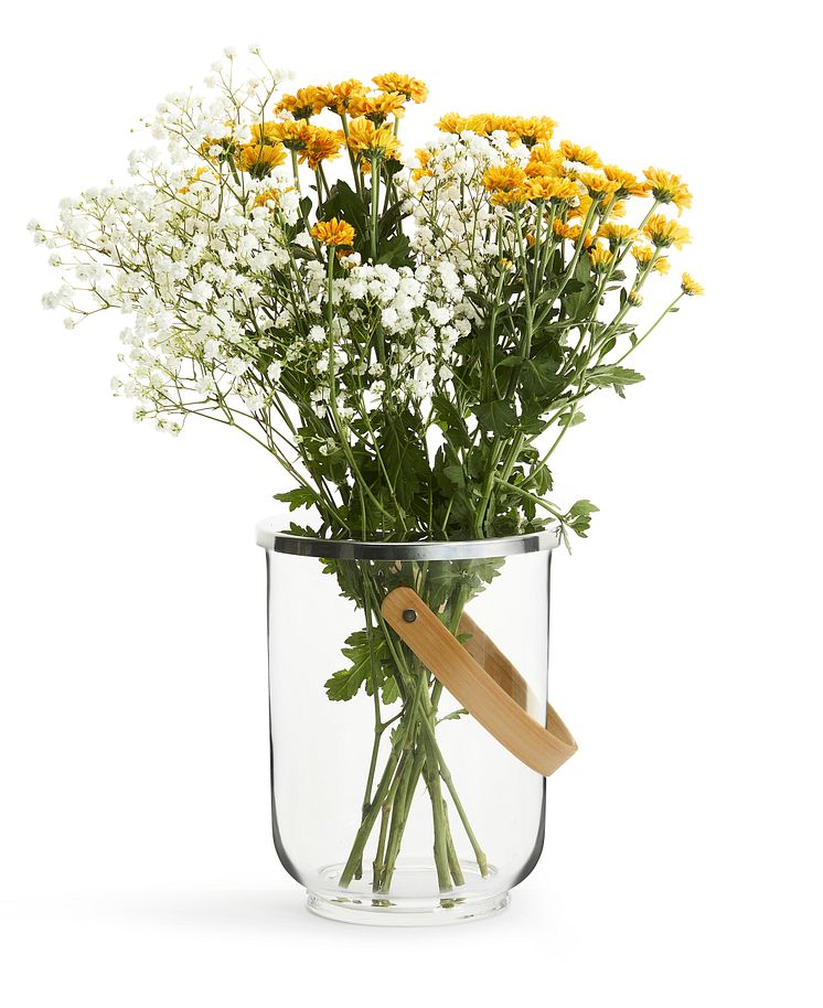 Glas/metall/ek. Elegant lanterna med en bland- ning av Natures signaturmaterial, ek, glas och rostfritt stål som är så fint ihop. Gör sig lika bra som lanterna, vas och till och med vinkylare! Helt enkelt en must have!