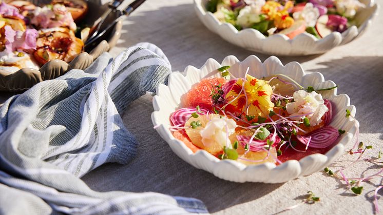 – Den här säsongen är våra relationer i fokus, årstidens enkelhet i att spontant ses på tu man hand eller många tillsammans. Vi vill bidra till att fler skapar vackra minnen! I kollektionen kan man ana en blommig inspiration, vi har också fortsatt inspireras av dukning som inbjuder till att dela både mat och upplevelse, säger Beatrice Lindgren, design – och konceptchef på Sagaform AB.