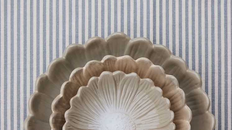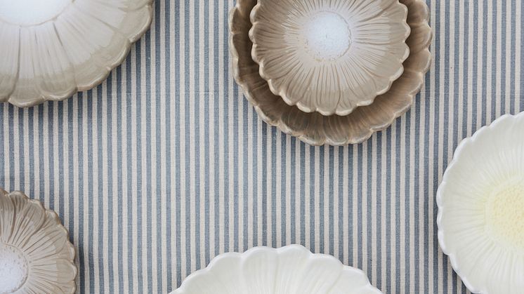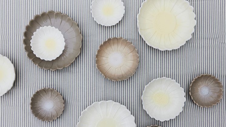 Vår- och sommarkollektionen innehåller produkter som skapar en varm känsla oavsett om du är utomhus eller inomhus. Produkter som alltid har en snygg design men också en tydlig funktion. Vi möter klassiker som vaxade dukar i tidsenlig design, påskdetaljer som aldrig behöver plockas undan och blommor som gör avtryck på fler än ett sätt. Kollektionen kommer till liv genom material som stengods, återvunnen bomull, glas, rPET och trä.