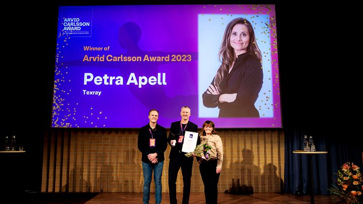 Arvid Carlsson Award by Sahlgrenska Science Park 2023 was awarded to Petra Apell, Texray, for an outstanding innovation and for being an inspirational entrepreneur with a relentless drive and an unwavering commitment to continuous growth, research, and development.