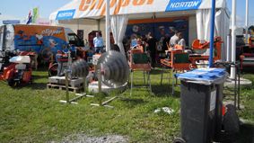 I vår monter visade vi Norton-Clippers breda sortiment diamantverktyg (klingor, borrkronor mm) och maskiner (kakel- och stenkapmaskiner, bords- och golvsågar mm). Bland nyheterna kan nämnas ett helt nytt sortiment borrutrustningar med borrstativ och borrmotorer. Vidare visades flera av Norton-Nimbus diamantklingor.