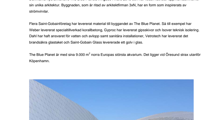 • Många Saint-Gobainföretag leverantörer till Danmarks nya akvarium