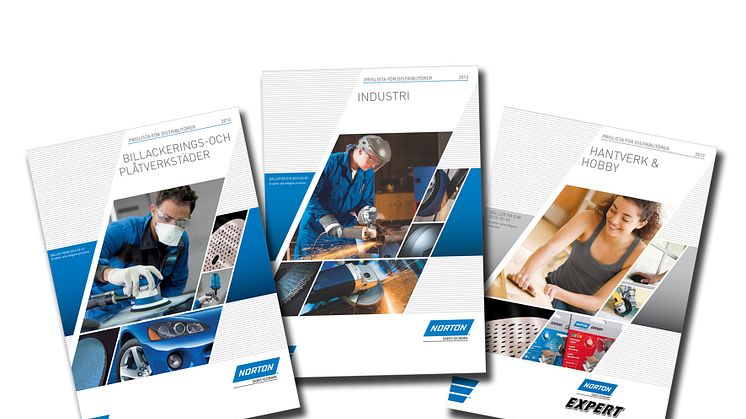 Nortons slipmaterialkataloger finns nu tillgängliga i digital form. Norton har tre olika produktkataloger för följande branscher: Norton Industri för industriella applikationer, Norton Billackering för plåt- och billackeringsverkstäder samt Norton Expert för hantverk och hobby.