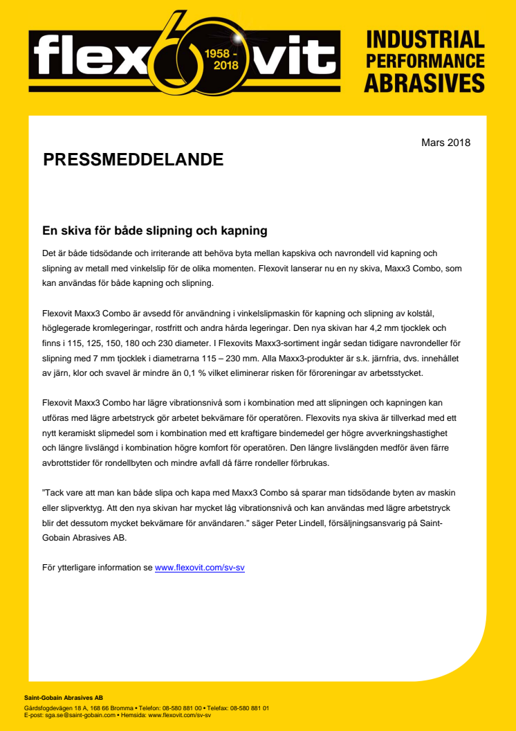 Det är både tidsödande och irriterande att behöva byta mellan kapskiva och navrondell vid kapning och slipning av metall med vinkelslip för de olika momenten. Flexovit lanserar nu en ny skiva, Maxx3 Combo, som kan användas för både kapning och slipning.