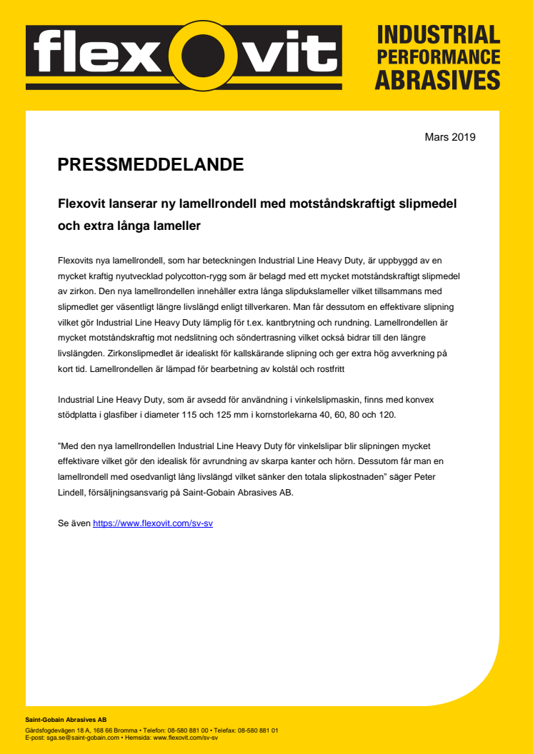 Flexovit lanserar ny lamellrondell med motståndskraftigt slipmedel och extra långa lameller