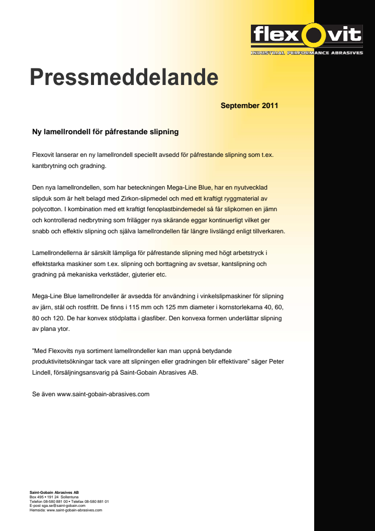 Flexovit lanserar en ny lamellrondell, Mega-Line Blue, speciellt avsedd för påfrestande slipning som t.ex. kantbrytning och gradning.
