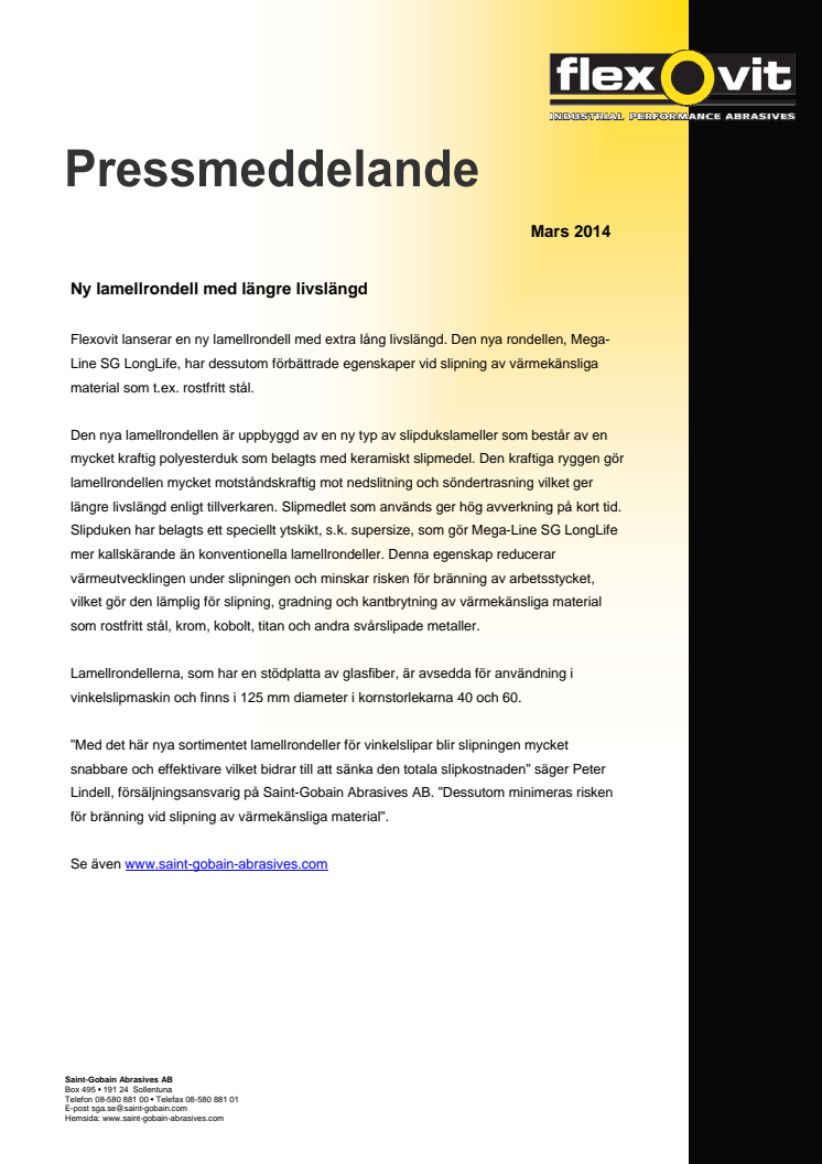 Flexovit lanserar en ny lamellrondell med extra lång livslängd. Den nya rondellen, Mega-Line SG LongLife, har dessutom förbättrade egenskaper vid slipning av värmekänsliga material som t.ex. rostfritt stål.