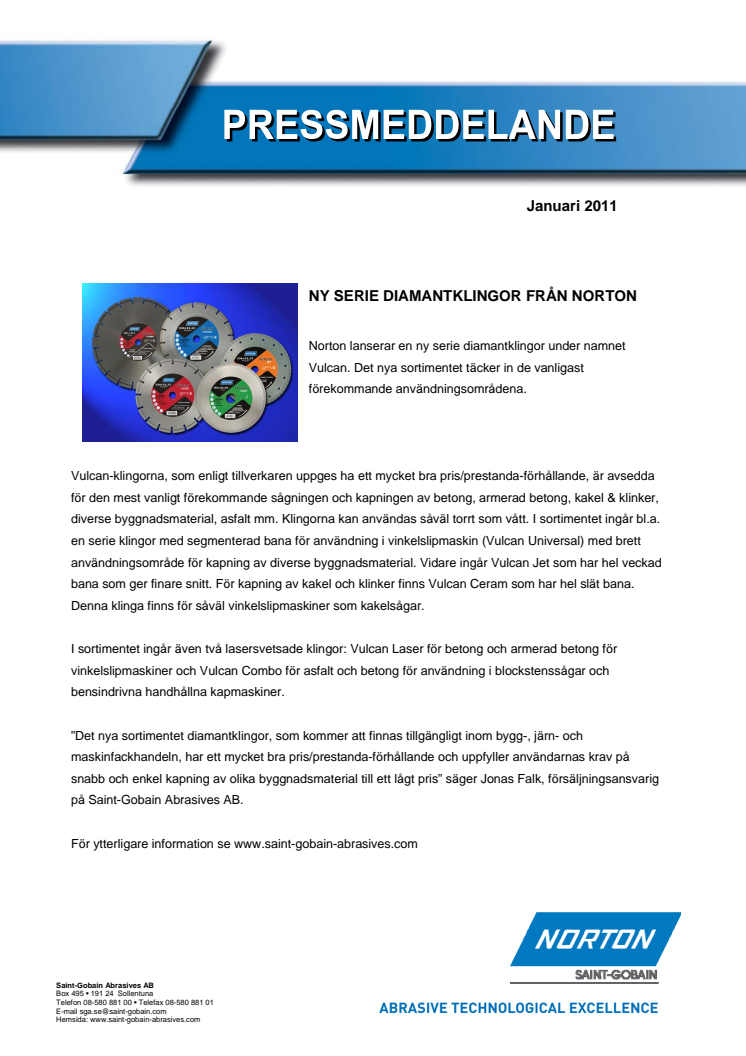 Norton lanserar en ny serie diamantklingor under namnet Vulcan. Det nya sortimentet täcker in de vanligast förekommande användningsområdena.
