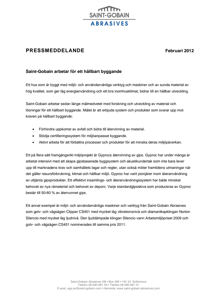 Saint-Gobain arbetar sedan länge målmedvetet med forskning och utveckling av material och lösningar för ett hållbart byggande. Målet är att erbjuda system och produkter som svarar upp mot kraven på hållbart byggande.