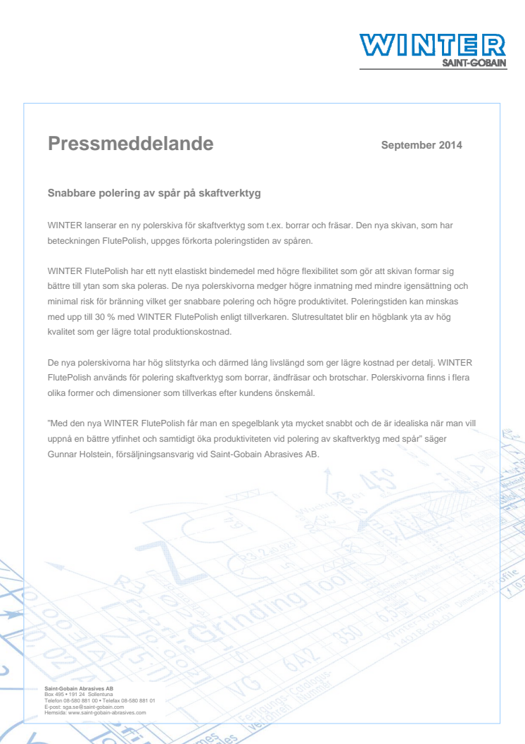 WINTER lanserar en ny polerskiva för skaftverktyg som t.ex. borrar och fräsar. Den nya skivan, som har beteckningen FlutePolish, uppges förkorta poleringstiden av spåren.
