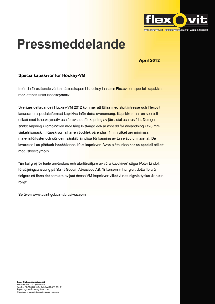 Inför de förestående världsmästerskapen i ishockey lanserar Flexovit en speciell kapskiva med ett helt unikt ishockeymotiv.