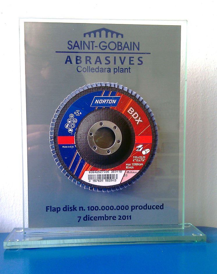 Saint-Gobain Abrasives fabrik i Colledara i Italien har tillverkat mer än 100 miljoner lamellrondeller sedan fabriken öppnades 1996. Den 100-miljonte lamellrondellen tillverkades den 7 december 2011. Idag tillverkas mer än 13 miljoner lamellrondeller årligen som levereras till Europa, Sydamerika, Australien, Afrika och Mellanöstern.