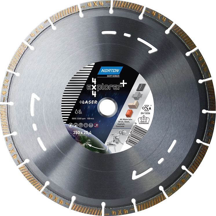 4x4 Explorer+ finns i diametrarna 230, 300 och 350 mm för användning i bensindrivna handhållna maskiner, bordsågar samt golv- och vägsågar.