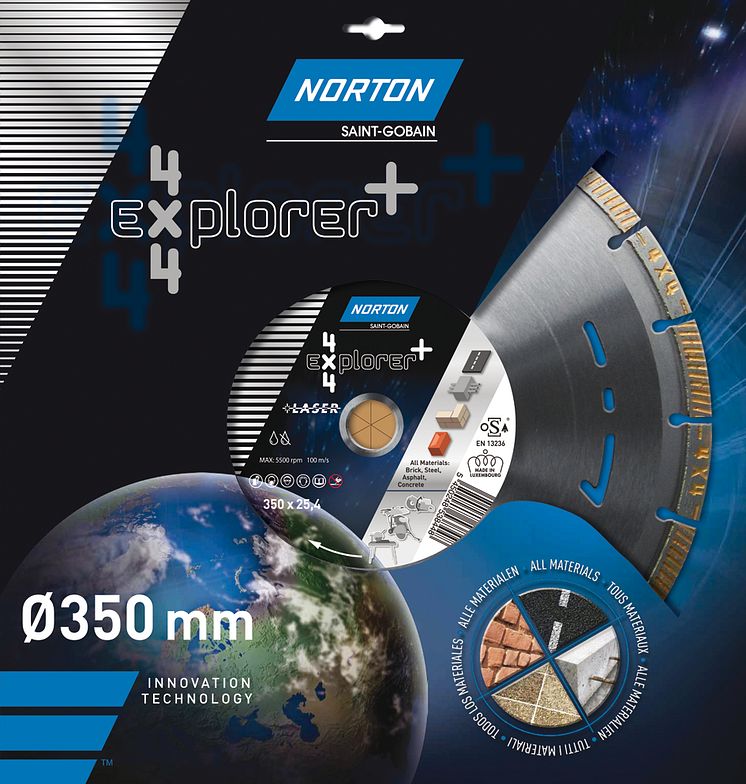 Norton lanserar en ny diamantklinga för kapning av flera olika material. Den nya klingan, som har beteckningen 4x4 Explorer +, är en vidareutveckling av 4x4 Explorer och uppges bl.a. ge snabbare och bekvämare kapning och ha längre livslängd än sin föregångare. Klingan har en informativ förpackning.