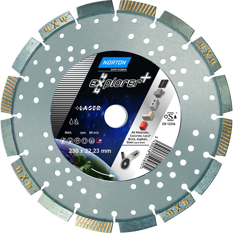 Nortons diamantklinga 4x4 Explorer+ för kapning av flera olika material har nu vidareutvecklats för att även ge effektiv kapning i produkter av Leca-material.