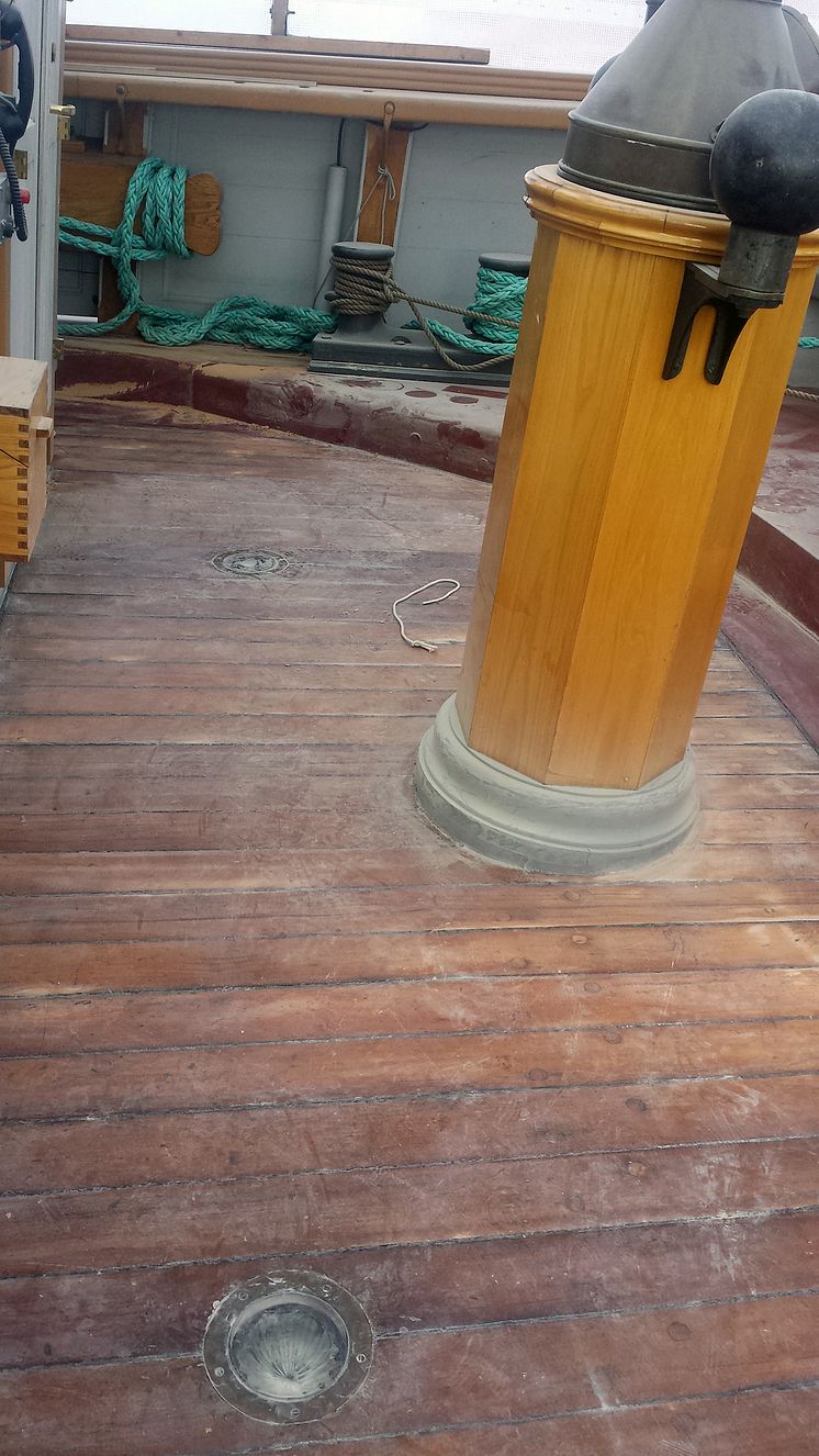 Just nu är det full fart ute på Kastellholmen i Stockholm där Briggen Tre Kronor rustas inför sommarens seglingar. Bland annat slipas däcket för att få några nya lager lack. För detta används en golvslipmaskin och Nortons slipnätsrondeller Q421 i 406 mm diameter.