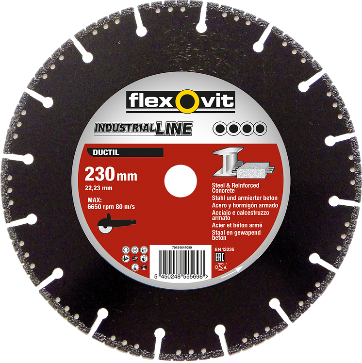 Flexovits nya klinga Ductil har en helt ny konstruktion där diamantslipkornen ligger utanpå själva segmentet. Detta ger en konstant och direkt kontakt med material som ska kapas och den får därmed en mycket aggressiv och snabb kapning.