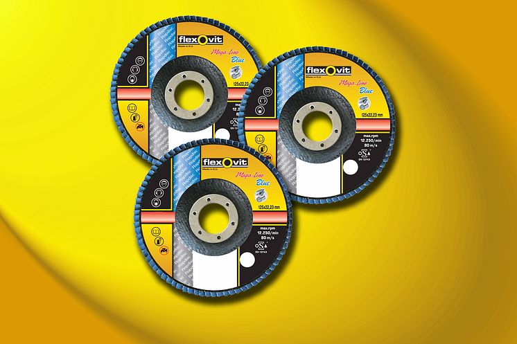 Flexovit lanserar en ny lamellrondell, Mega-Line Blue, speciellt avsedd för påfrestande slipning som t.ex. kantbrytning och gradning.