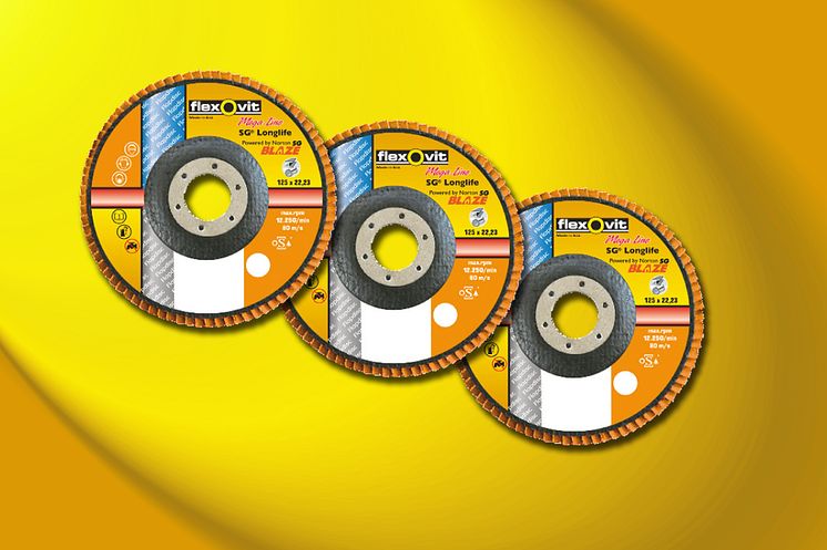 Flexovits nya lamellrondell Mega-Line SG Longlife är uppbyggd av en ny typ av slipdukslameller som består av en mycket kraftig polyesterduk som belagts med keramiskt slipmedel. Den kraftiga ryggen gör lamellrondellen mycket motståndskraftig mot nedslitning och söndertrasning vilket ger längre livslängd enligt tillverkaren.