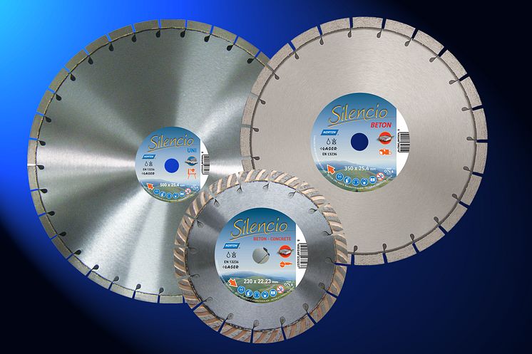 Nortons sortiment med ljuddämpade diamantkapklingor Silencio har utökats med flera nya dimensioner vilket breddar användningsområdet och möjliggör därmed förbättrad arbetsmiljö på fler platser än tidigare.