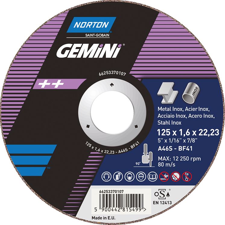 Norton Gemini kapskivor används för kapning ger snabb och effektiv kapning. De är bekväma att använda tack vare låg vibrationsnivå.
