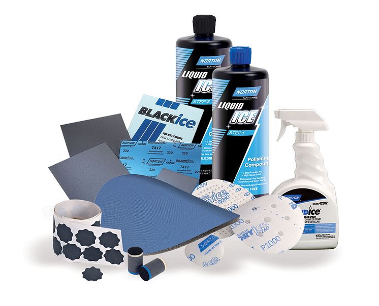 I Norton Ice-sortimentet, som är ett komplett system för slutbearbetning och polering av lack och klarlack, ingår dessutom filmrondeller, våtslippapper, rosettrondeller för borttagning av dammnoppor o. dyl., vattenbaserade polerpastor, polersvampar och lammullshättor, lackskydd, mikrofiberduk och underlagsplattor.