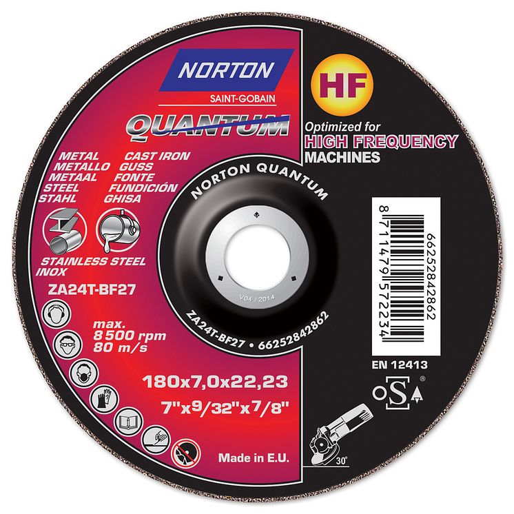 Norton lanserar ett nytt sortiment navrondeller speciellt avsedda för användning i vinkelslipar med mycket hög effekt. De nya navrondellerna, Norton Quantum HF, används för slipning med elektriska högfrekvensvinkelslipar eller med pneumatiska turbindrivna vinkelslipmaskiner.