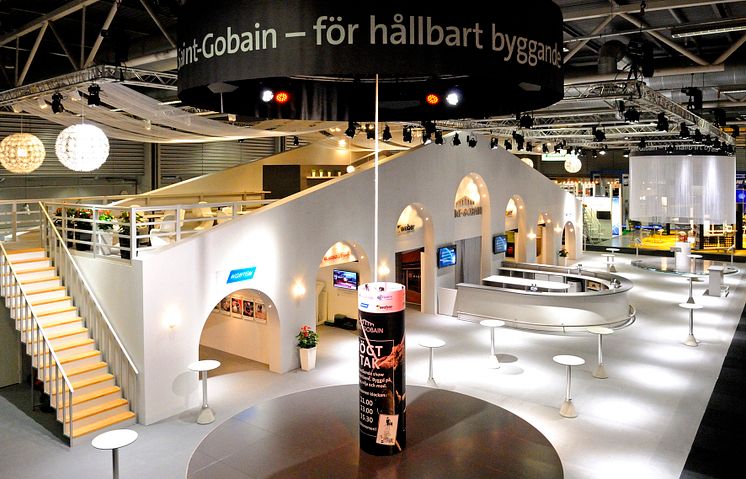 Sex Saint-Gobainföretag samlades i en gemensam monter på Nordbygg 2012 under temat Hållbart byggande. I Sverige representeras Saint-Gobain i byggsektorn av Ecophon, Emmaboda Glas, Gyproc, ISOVER, Norton och Weber.