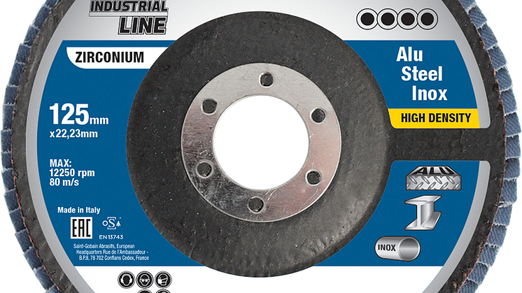 Industrial Line Heavy Duty, som är avsedd för användning i vinkelslipmaskin, finns med konvex stödplatta i glasfiber i diameter 115 och 125 mm i kornstorlekarna 40, 60, 80 och 120.