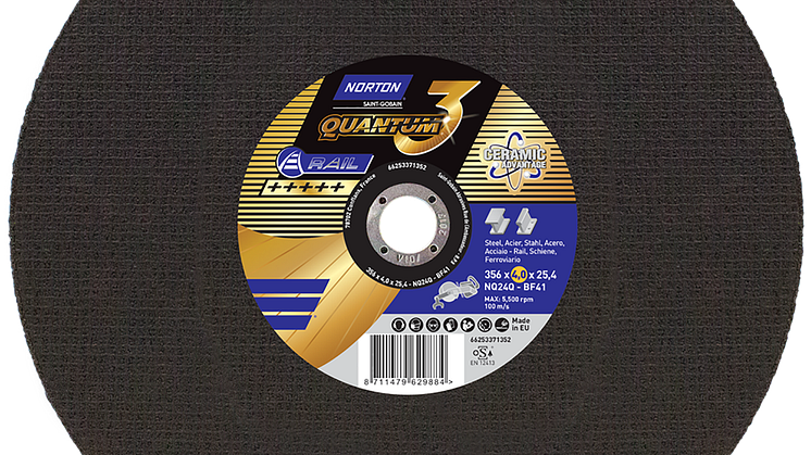 Efter den framgångsrika lanseringen av Norton Quantum 3 utökas nu Nortons sortiment av högpresterande keramiska kapskivor. Den nya kapskivan, som har beteckning Quantum 3 Rail, är en kapskiva för rälskapning, utformad för maximal säkerhet, komfort, hållbarhet och prestanda.