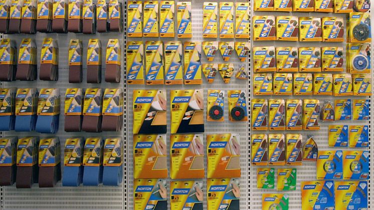 Slipmaterialleverantören Norton lanserar ett nytt butiksförpackat sortiment med konsumentslipprodukter. I sortimentet, som omfattar ca 125 artiklar, ingår bland annat kardborrerondeller för excenterslipmaskiner, torr- och våtslippapper för handslipning, kardborreark för oscillerande maskiner, slippappersrullar för hand- och maskinslipning, slipduksband för handhållna bandslipmaskiner, grovrengöringsrondeller samt diamantkapklingor för sten och betong.