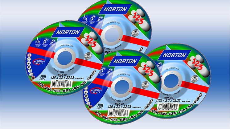 Skivans uppbyggnad medför också lägre ljudnivå och mindre vibrationer vilket bidrar till större komfort för användaren. Norton 1-2-3 är avsedd för användning i vinkelslipmaskiner för kapning, slipning och polering av järn, stål och rostfritt. Den nya skivan tillverkas i dimensionen 115 och 125 mm diameter och är så kallat järn-, svavel- och klorfri. Den nya skivan ger enligt leverantören betydande tids- och kostnadsbesparingar genom att användaren inte behöver byta skiva mellan exempelvis kapnings- och slipningsmomenten. Den nya skivan har dessutom större livslängd jämfört med konventionella kapskivor och navrondeller.