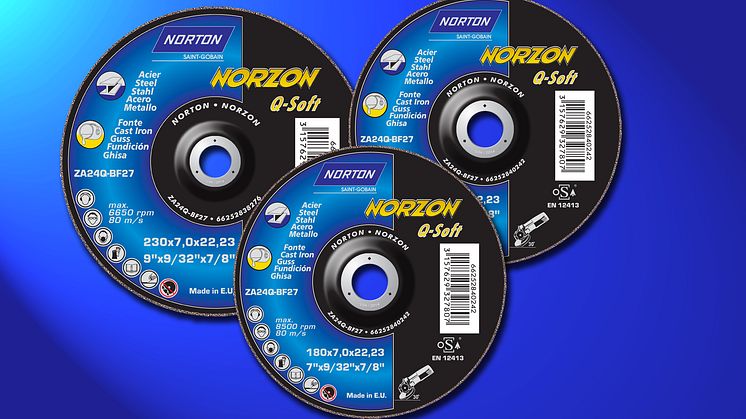 De nya navrondellerna har en slipmedelssammansättning som består av dels aggressivt NorZon-slipmedel och dels premium aluminiumoxidslipmedel. Denna blandning ger högre avverkning än navrondeller med enbart aluminiumoxidslipmedel. Norton NorZon Q-Soft-sortimentet omfattar navrondeller med diameter 115 mm, 125 mm, 150 mm, 180 mm och 230 mm och är avsedda för användning i vinkelslipmaskiner. De är speciellt lämpliga för slipning av stål och gjutgods med maskiner som har relativt låg effekt. Navrondellerna har också en konstruktion som ger en låg vibrationsnivå och därmed gör slipningen mer komfortabel för användaren enligt tillverkaren.