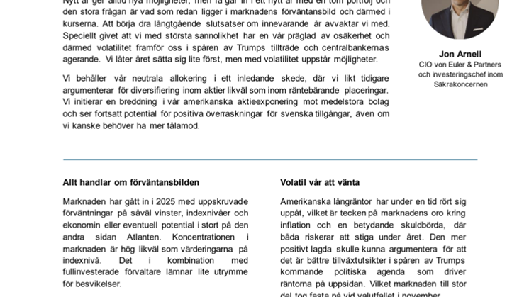 Marknadssyn januari 2025: Risken för ökad volatilitet är påtaglig