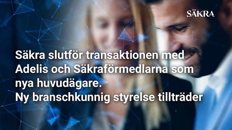 Säkra slutför transaktionen med Adelis och Säkraförmedlarna som nya huvudägare. Ny branschkunnig styrelse tillträder