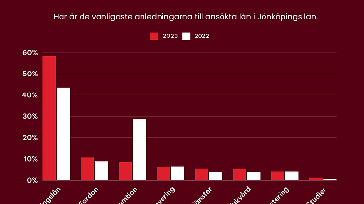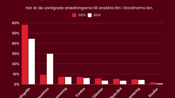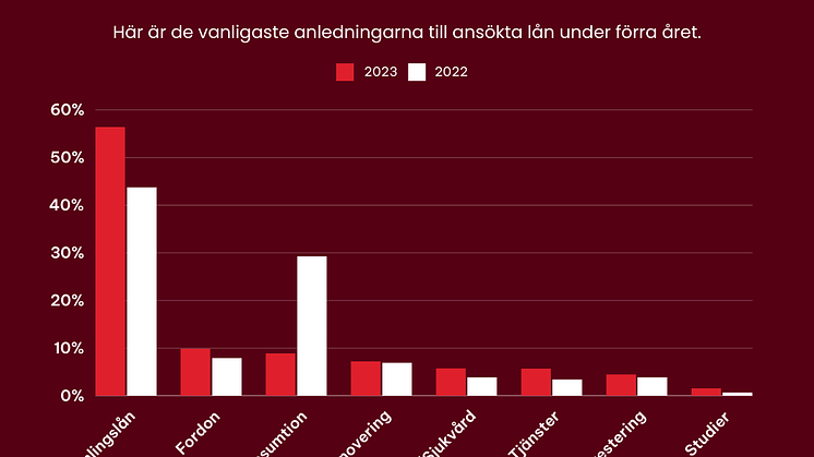 Om undersökningen: Sammanställningen är gjord av Sambla och baseras på samtliga sökta lån hos Sambla och Advisa i Sverige under 2023, totalt över 600 000 stycken. Datan jämförs med tidigare undersökning som anger motsvarande siffror för 2022. Sambla Group är en av Nordens största aktörer inom låneförmedling.