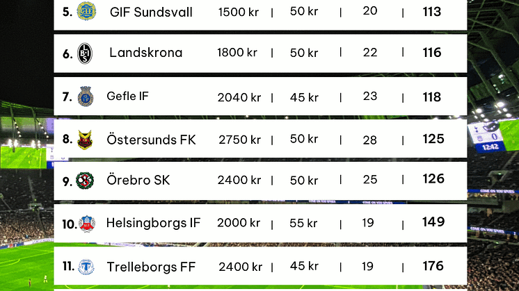 Lagen med dyrast säsongskort och matchfika, lagen som ger flest poäng för pengarna och mer på vår sajt!