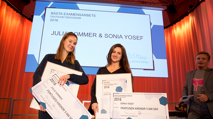 Grattis Sonia Yosef och Julia Sommer till utmärkelsen Bästa examensarbete inom Fastighetsekonomi 2016 - High Yield – tid att blomstra?