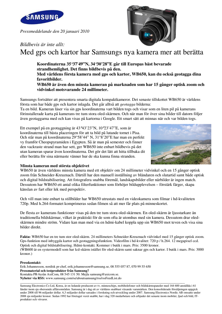 Med världens första kamera med gps och kartor, WB650, kan du också geotagga dina favoritbilder.