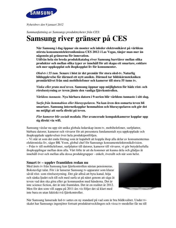 Utifrån hela sin breda produktkatalog river Samsung barriärer mellan olika produkter och mellan olika typer av innehåll för att skapa ett smartare, enklare och mer uppkopplat och ihopkopplat liv för konsumenter.