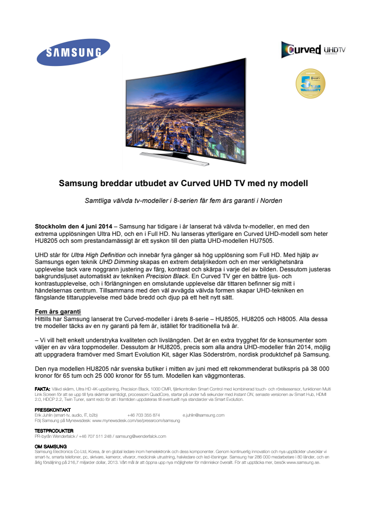 Samsung breddar utbudet av Curved UHD TV med ny modell