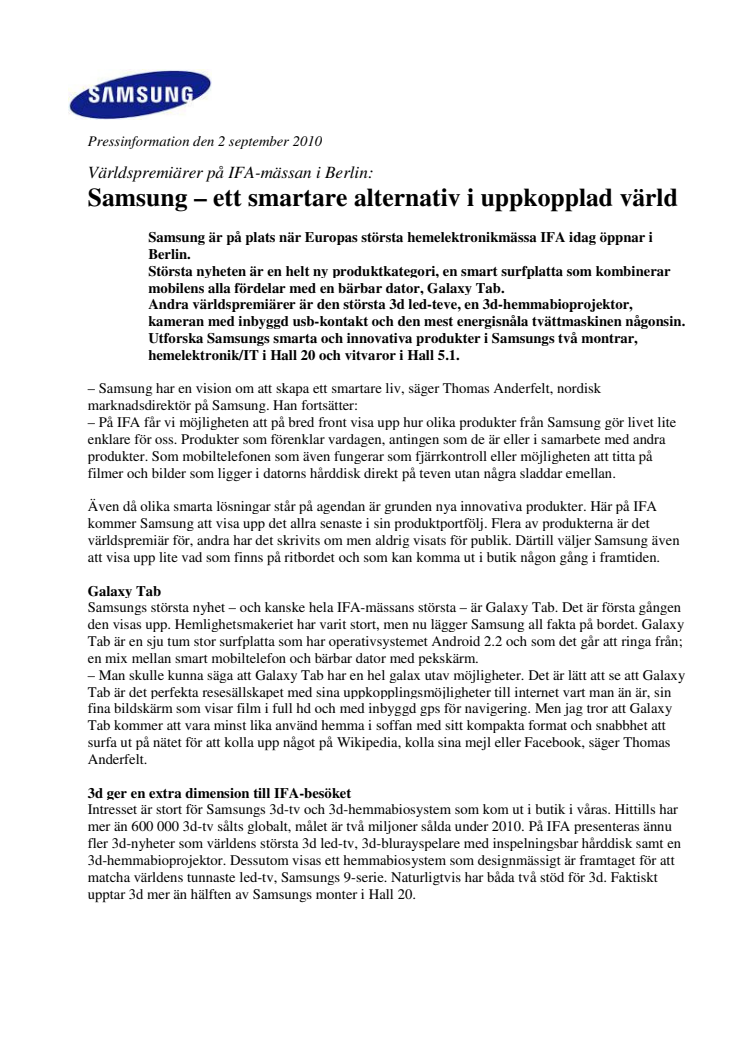 Största nyheten är en helt ny produktkategori, en smart surfplatta som kombinerar mobilens alla fördelar med en bärbar dator, Galaxy Tab.