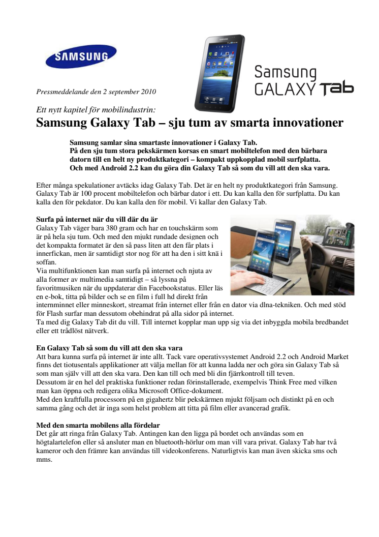 Samsung Galaxy Tab – sju tum av smarta innovationer