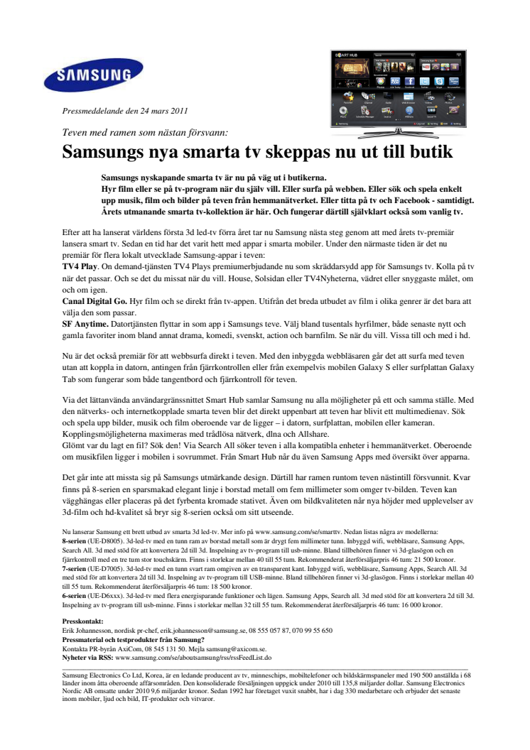 Samsungs nya smarta tv skeppas nu ut till butik