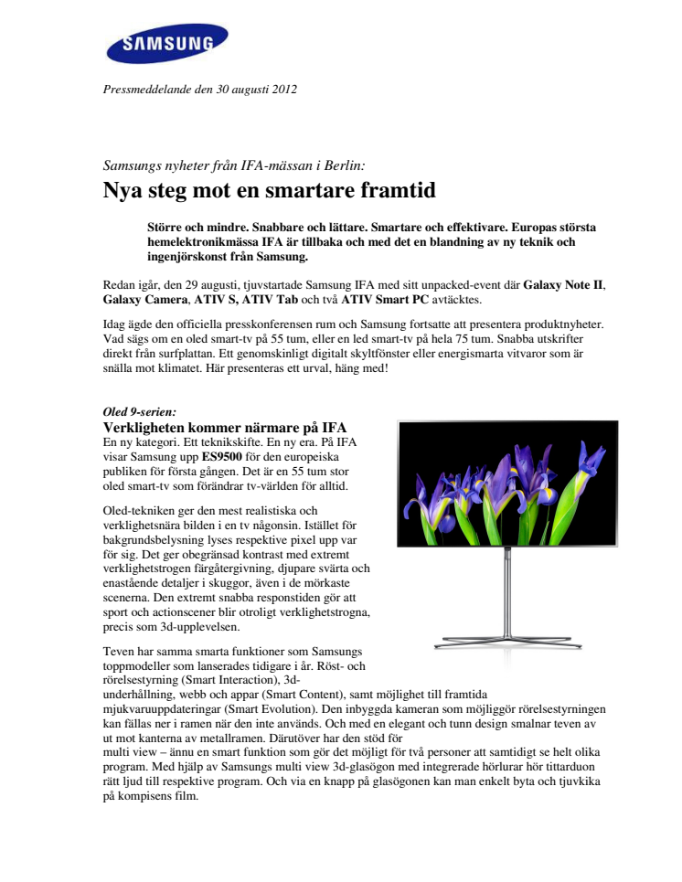 Större och mindre. Snabbare och lättare. Smartare och effektivare. Europas största hemelektronikmässa IFA är tillbaka och med det en blandning av ny teknik och ingenjörskonst från Samsung.