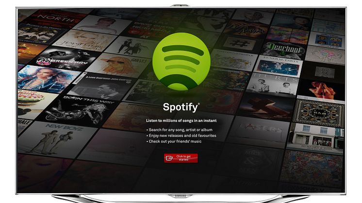 Att få tillgång till Spotify via en Samsung-tv är enkelt. Via internetanslutna Samsung smart-tv, blu-ray-spelare eller hemmabiosystem laddas appen ned i Smart Hub – Samsungs plattform för onlineunderhållning. Därefter är det bara att logga in på Spotify som vanligt, i ett gränssnitt som anpassats för tv-skärmar. De som sedan tidigare använder Spotify Premium kan lyssna på musik och komma åt sparade spellistor, som synkroniseras automatiskt. De som inte använder Spotify kan besöka www.spotify.com/freetrial för att kostnadsfritt prova på Spotify Premium i 30 dagar.