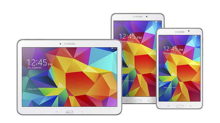 Stockholm den 3 april 2014 – Samsung presenterar nu Galaxy Tab 4, den nya generationen av Galaxy Tab. Serien består av tre tablets som ger alla i familjen en fin multimedia-upplevelse vare sig det handlar om lek, avkoppling eller arbete. Liksom föregående serie finns Galaxy Tab 4 i storlekarna 10.1 tum, 8.0 tum och 7.0 tum. Det är enkelt att välja modell, tack vare att alla har samma förträffliga specifikationer och känsla. Endast storleksvalet för skärmen behöver göras. Självklart är alla tablets i serien tunna och lätta