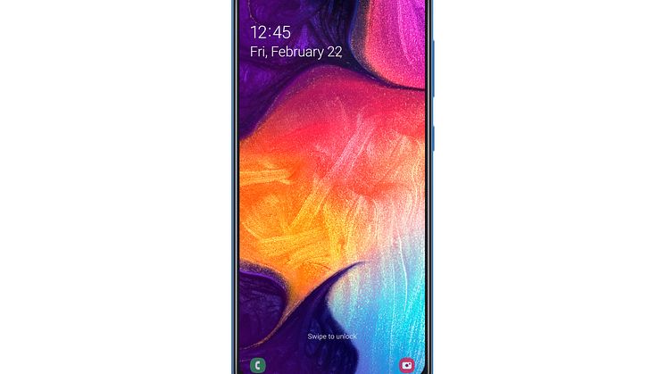 Samsung Galaxy A50 har en 6.4” FHD+ SuperAMOLED, kameror: front 25MP + bakre 25 MP / 5 MP djup / 8 MP vidvinkel, batteri: 4000 mAh, fingeravtrycksläsare i display. Rekommenderat pris 3 990 SEK och finns redan på den nordiska marknaden.