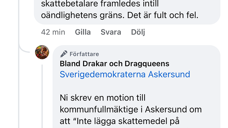 Nu har ännu en av Sverigedemokraternas lokalavdelningar, SD Askersund, varit inne på Bland Drakar och Dragqueens Facebook-sida och gått till direkt angrepp mot oss som enskilda kulturutövare.