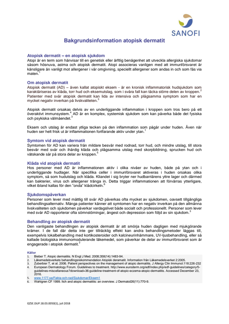Atopisk dermatit bakgrundsinformation
